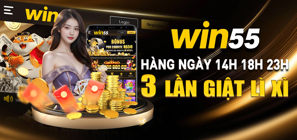 Tất cả các thành viên của Win55 vào lúc 14h, 18h và 23h đăng nhập mỗi ngày để tham gia giành bao lì xì, mỗi ngày 3 lần. Giá trị phần thưởng lớn nhất lên tới 55555K, số lượng có hạn. Ai cũng có cơ hội, nhanh tay giới thiệu bạn bè vào Win55 cùng tham gia nào!